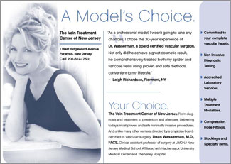 If the Vein Treatment Center is good enough for a professional model, then it can be trusted by others. That’s the message behind this ad, which features an actual client, not stock photography.