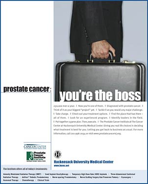 Unlike most cancers, people diagnosed with prostate cancer have treatment options. With hard-hitting language and a compelling visual, this advertisement captured the attention of New York Times, Record, and Star-Ledger readers. LJS Communications managed this project from concept and copy writing to design and placement.