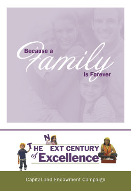 To launch its $3-million capital campaign, LJS Communications wrote this ‘leave behind’ brochure. The agency’s mission is to help children and families to heal, grow, and thrive in communities. The brochure’s theme, ‘Because a Family is Forever,’ emphasizes the need to sustain the agency so that its services will be available to assist today’s families and all those that will follow.