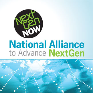 This logo, along with collateral materials, were produced for the National Alliance to Advance NextGen, a group of industry professionals who are advocating the use of Next Gen air traffic control system technology.